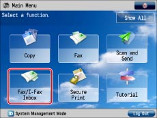 Select [Fax/I-Fax Inbox] from the Main Menu screen.