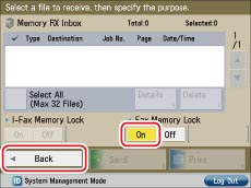 Press [On] for <Fax Memory Lock> → [Back].