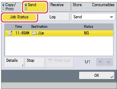 Select the job to resend → press [Details] → [Resend].