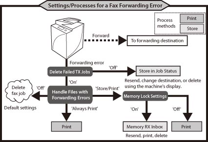 When a forwarding error occurs, the machine processes the fax as shown below.