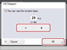Press [-] or [+] to set the TX timeout time → press [OK].