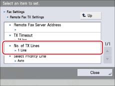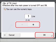Press [-] or [+] to set the number of telephone lines to use → press [OK].