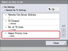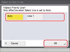 Select [Auto] or the line to use as a priority → press [OK] → [Close].