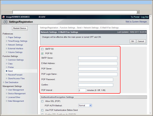 (This refers to the interval that the imageRUNNER ADVANCE machine goes to the mail server to check for e-mail.) |