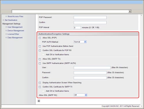 Select this to confirm whether the SSL server certificate is valid when sending with SMTP. Select [Add CN to Verification Items] if you want to confirm the CN (Common Name).