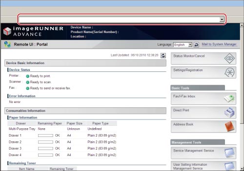 The e-mail address to set for the imageRUNNER ADVANCE machine.