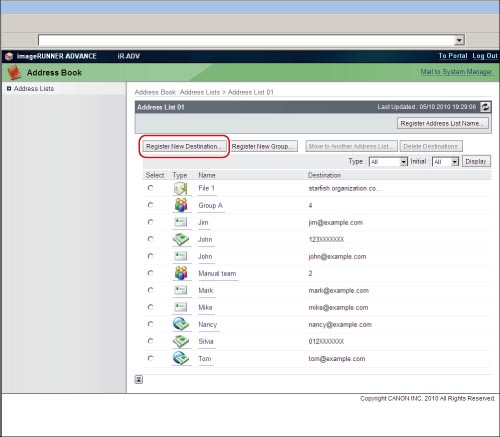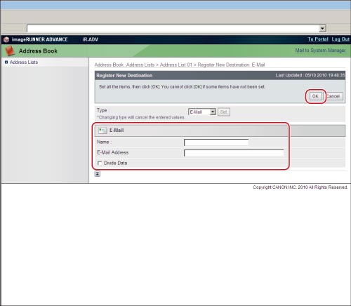 E-Mail Address Acquired for the imageRUNNER ADVANCE Machine