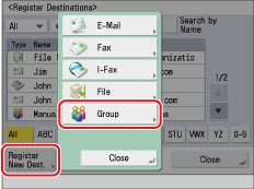 If you register a group that includes multiple e-mail addresses in the address book, you can send to all of the e-mail addresses included in that group at once by selecting that group as the destination.