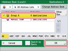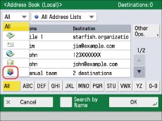 Press [Scan and Send] on the Main Menu screen → [Address Book] → select [] from the drop-down list.