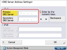 → [Preferences] → [Network] → [TCP/IP Settings] → [DNS Settings] → [DNS Server Address Settings].