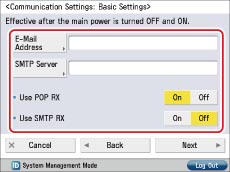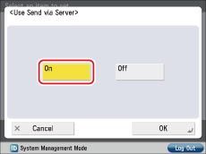 → [Function Settings] → [Send] → [E-Mail/I-Fax Settings] → [Use Send Via Server].