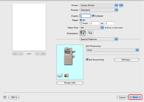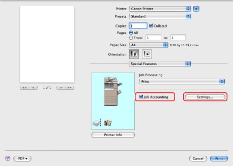 On the [Special Features] panel, select [Job Accounting] → click [Settings].
