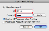 Click [Verify] to check whether the [ID] and [Password] registered for the printer are correct.