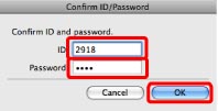 In the [ID/Password Settings] dialog box, set the ID and password that you registered in step 4 of "Settings on the Machine."