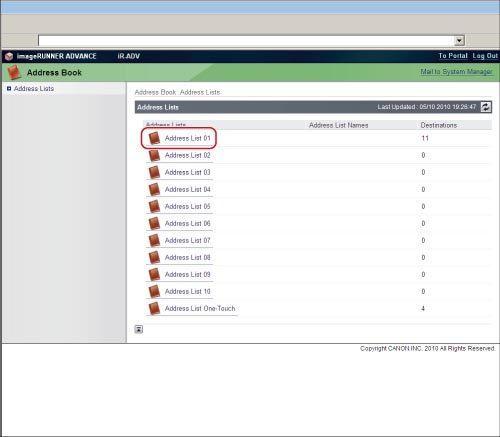 Click [Address Book] → [Address List 01] on the Address List screen.