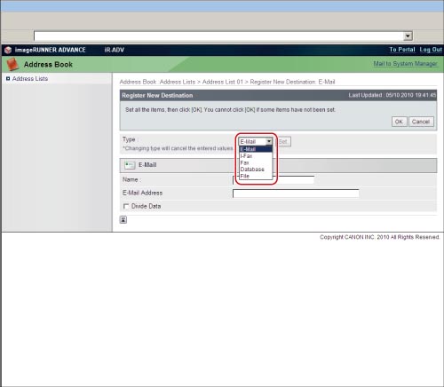 You can perform this procedure using the touch panel display or the Remote UI. Using the Remote UI, you can register a destination with ease.