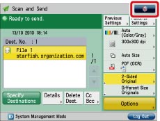 If you select [On], when the registered button is recalled, a screen confirming the settings is displayed. For more information on the confirmation screen, see " Sending a Document Using the Quick Menu Button." If you select [Off], when the registered button is recalled, a screen confirming the settings is not displayed.