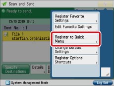 Registering the Procedure for Sending from the Machine in the Quick Menu