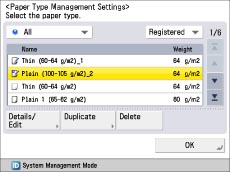[Paper Type Management Settings] Screen Display