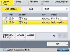 If you set [Copy/Print], [Job Status], [Print] as the Default Screen (Status Monitor/Cancel):