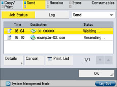 If you set [Send], [Job Status], [Fax] as the Default Screen (Status Monitor/Cancel):