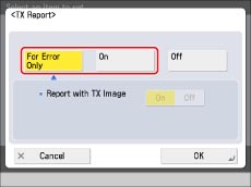 For more information on the Send TX Report/Send Error TX Report, see "TX REPORT."