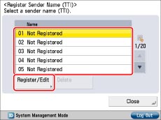 You can register any name as the Sender Name, such as the section or department's name, or an individual's name, and edit/delete registered names.