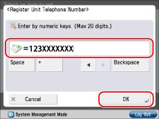 Use to insert a country code. Press [+] after the country code, before the fax number.