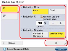 If the area of the image which exceeds the printable area is less than 12 mm, the image will not be printed, regardless of the settings you set for Reduce Fax RX Size.