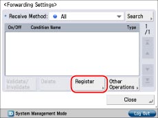 The forwarding settings are stored in memory if you press [OK] on the Register screen or the Edit screen.