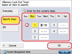 You can select [Everyday] for Memory Lock Start Time and [Specify Days] for Memory Lock End Time, and vice versa.