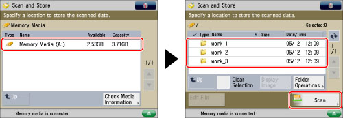 Press [Scan and Store] → [Memory Media].