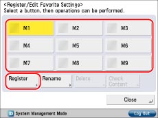 Select a button ([M1] to [M9]) to register settings → press [Register].
