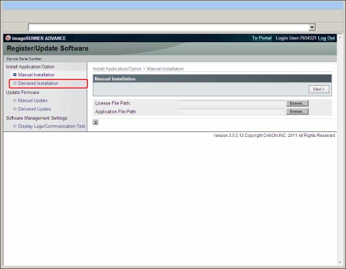 If you press [Stop] when installing a MEAP application, it is necessary to start the MEAP application before using it. (See "Starting/Stopping Applications.")