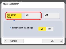 If you want to print part of the sent document on the Fax TX Report, press [On] for <Report with TX Image>.