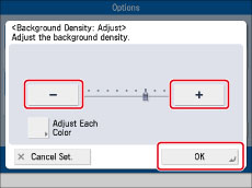 Press [-] and [+] to adjust the background density → press [OK].