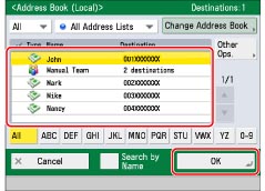 (numeric keys). If you press [Addresses without Access Number], the destinations that are not managed with an access number are displayed.|