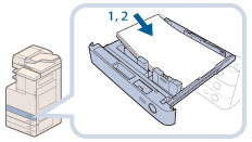 1. Make sure that the paper size setting of the paper drawer matches the size of the paper to load in the paper drawer. |