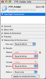 Through [Ownership & Permissions], allow reading/writing for the owner and group members.