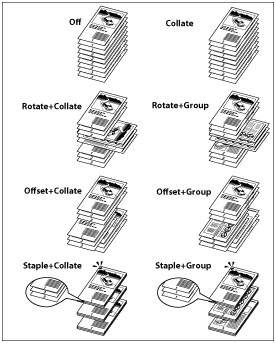 [Off]* [Collate], [Rotate+Collate], [Rotate+Group], [Offset+Collate], [Copies], [Offset+Group], [Staple+Collate], [Staple+Group]