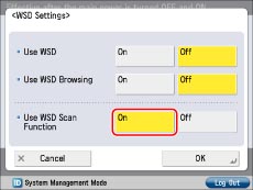 If the optional ACCESS MANAGEMENT SYSTEM KIT is activated, you can not use the WSD Scan function.