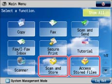 Press [Scan and Store] or [Access Stored Files] on the Main Menu screen.