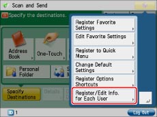 Press [Register/Edit Info. for Each User].