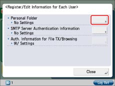 The procedure below describes how to register the folder path for the personal folder and authentication information for each user.