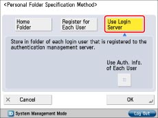 You can use personal folders without specifying authentication information for each user when the conditions below are met. In that case, deselect [Use Auth. Info. of Each User].