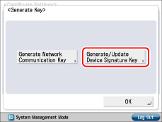 If user signature is disabled, it is not necessary to press [Key and Certificate List for This Device]. If you press [Key and Certificate List], the screen changes to the Key and Certificate List screen.