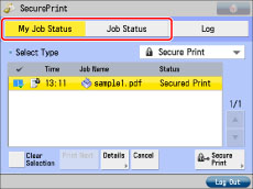If you are logged on as the SSO-H administrator, jobs sent by all users are displayed, and you can view the details of or cancel the jobs. However, secured documents and encrypted secured documents can only be printed by the user that sent them.