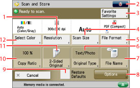 Press to cancel all settings. (The machine restores the default settings for Scan and Store.) |