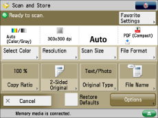 <Memory Media> in [Store Location Display Settings] is set to 'Off' by default. To use memory media, set <Memory Media> to 'On'. (See "Store Location Display Settings.")