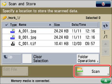 You can scan and store up to 999 pages at one time. If two-sided originals are scanned using the feeder, you can store up to 1,000 pages. Once the maximum number of originals you can scan is reached, a message asking whether to store appears.